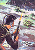 gleiche Körperhaltung, restliches Bild unterschiedlich, 14 Vorbild für Nachzeichnung des Schützen und auch des tieffliegendes Flugzeugs in 1, in 10 hat der Mann zwar keine Waffe, dafür ist auch die Frau im Bild, die im Vorbild in 14 auftaucht |