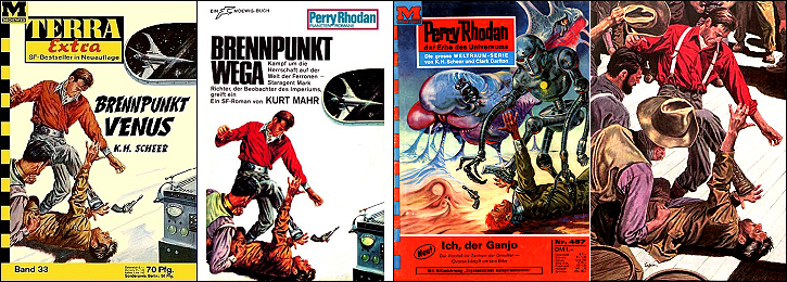Die Mehrfachverwendungen der Titelseiten-Grafiken der Terra-Extra Heftausgaben