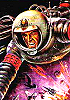 Im Weltraum schwebender Raumsoldat mit verzerrtem Gesicht, siehe auch