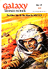 Raumfahrer über Boden schwebend, wo kugelförmige Gebäude zu sehen sind |