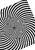 zwei Männer schleppen Frau, im Hintergrund Scheibe mit spiralförmig nach außen verlaufenden schwarzweißem Muster |
