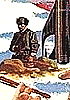 zwei Männer diskutieren miteinander, im Hintergrund Rakete und Soldaten mit Pelzmützen