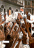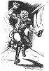 laufender Mann von vorn mit einer erhobenen Hand und in der anderen mit einer Pistole