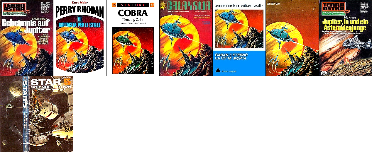 1 - 6 gleiches Bild, 7 geringfügig ähnliches Motiv, das Raumboot in 1 ist von 8 inspiriert, wenngleich farblich verändert |