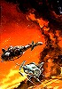 zwei Männer werfen sich vor startenden Raumbooten auf den Booten