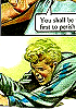 Mann wird von Reiter auf Reptil mit Morgenstern attackiert