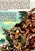 Eingeborener mit Speer schaut von Felsvorsprung auf gelandetes Raumschiff |
