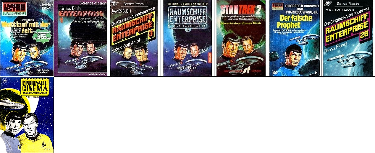 1 - 5 gleiches Bild, 3 seitenverkehrt, 6 sehr ähnlich, aber ohne Kirk, 7 ist der Hintergrund von 6 samt Enterprise, in 8 ist Kirk etwas anders als in 1 gezeichent, Spock aber sehr ähnlich