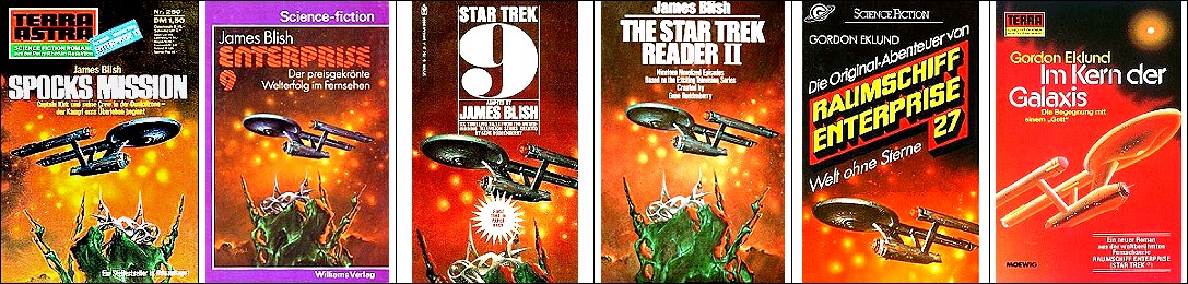 1 - 5 gleiches Bild, seitenverkehrt, 5 Ausschnitt nur mit Enterprise, 6 ähnliches Motiv