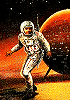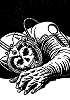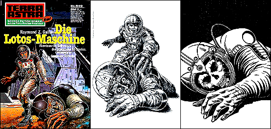 Raumfahrer entdeckt liegenden skelettierten Raumfahrer im Raumanzug, siehe auch Terra Heft Nr. 117