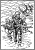 zwei Raumsoldaten mit Feuerwaffen auf Mond