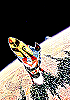 Raumschiff bzw. Hand über Erde mit Wirbelsturm