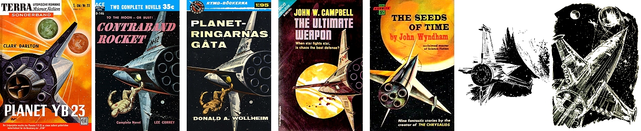 Raketenraumschiff von hinten mit sichtbaren Triebwerksdüsen, siehe auch Terra Nova Heft Nr. 512