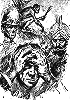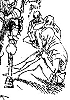die sitzenden Gestalten kommen auch in 3 vor, ähnliche blauhäutige Gestalten auch in 4, 5 Vorbild für Nachzeichnungen |