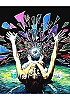 auf Boden liegender Mann, darüber bunte fliegende Scherben |
