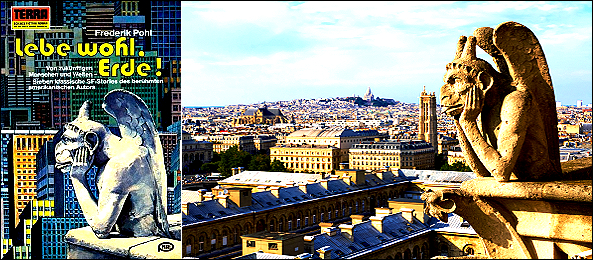 ein Gargoyle (Wasserspeierfigur) der Kathedrale Notre Dame in Paris wurde als Collage in 1 eingebaut |