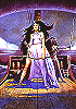 nackte Frau vor einem König, der auf seinem Thron sitzt und sich auf sein Schwert stützt |