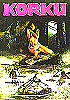 Krieger beschützt Mädchen mit Schwert, im Hintergrund Riesenschlange |
