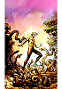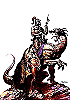 Reiter auf Echsenwesen und leicht bekleidete junge Frau