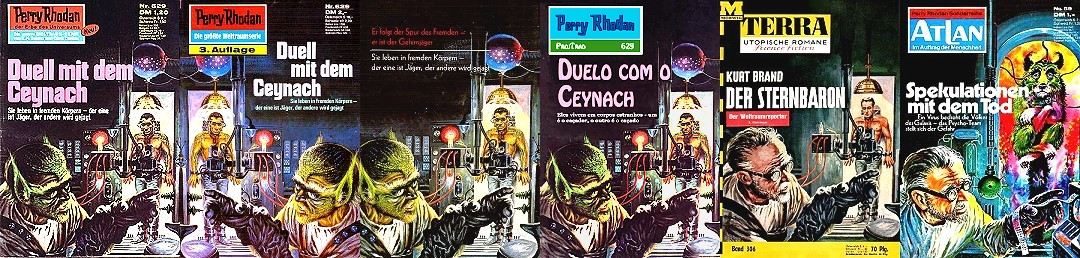 Bei Perry Rhodan 629 sieht man, wie das Titelbild von Terra 306 verwandelt wurde. Der Kopf des Forschers wurde in den eines Außerirdischen