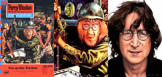 Prominente Personen wurden sowohl nachgezeichnet, als auch in Collagetechnik verwendet. Das Vorbild für Perry Rhodan auf der Nr. 19