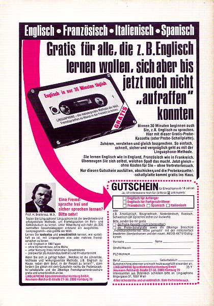 Karton-Papier gedruckte Beilage in Farbe und im Halbformat. Werbung für den PR-Silberband