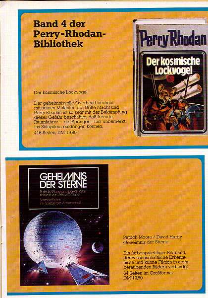 Werbung für SF-Bücher vom Moewig-Verlag des PV Buchversand, Karlsruhe.