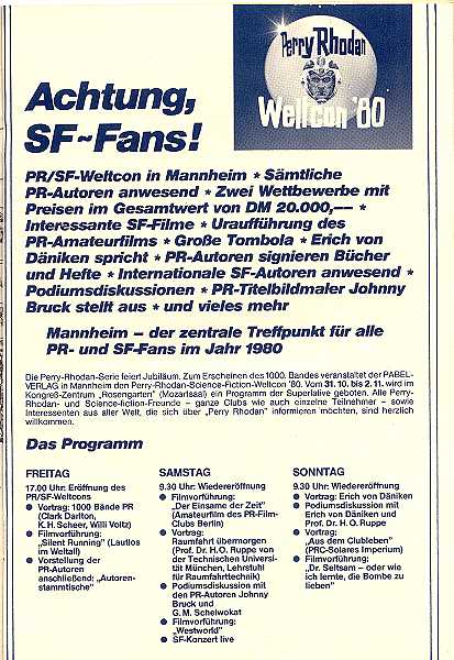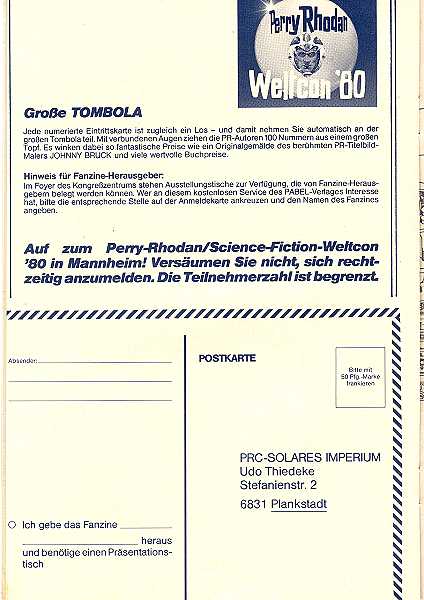 Werbung für den WeltCon 1980 mit Antwortkarte an den PRC Solares Imperium. |