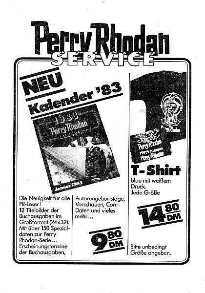 Werbung für den Perry Rhodan Service des PV Buchversand, Karlsruhe. |
