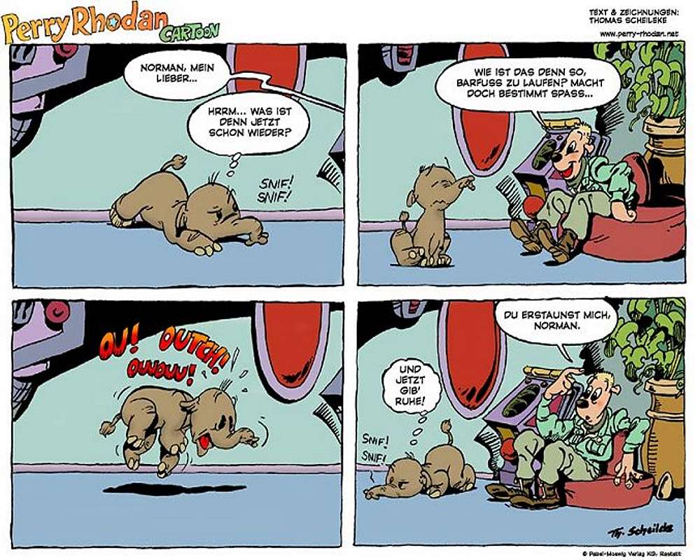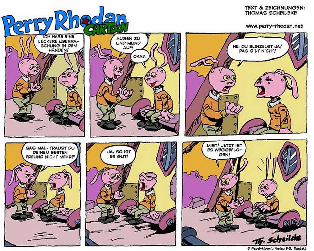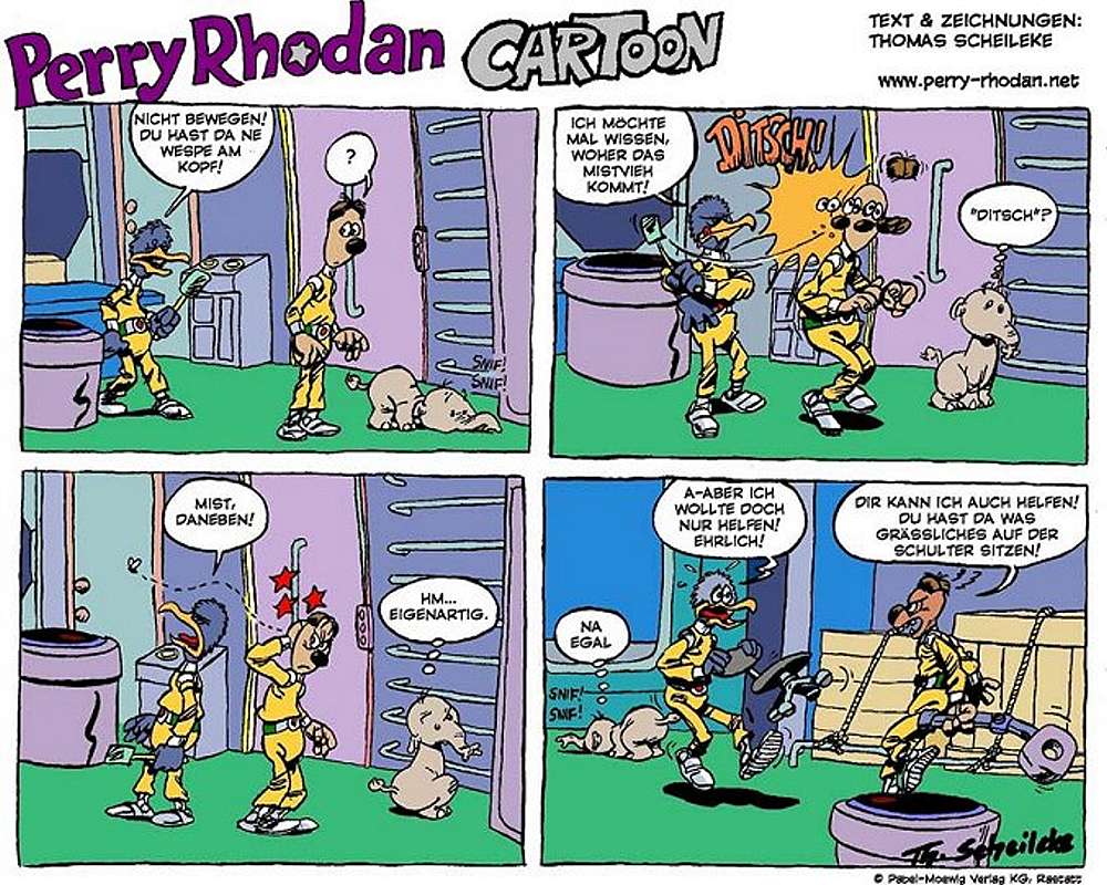 Thomas Scheileke war der Zeichner und Texter von fast 200 Perry Rhodan Cartoon-Ausgaben. In Heft Nr. 2181 (10.06.2003) war