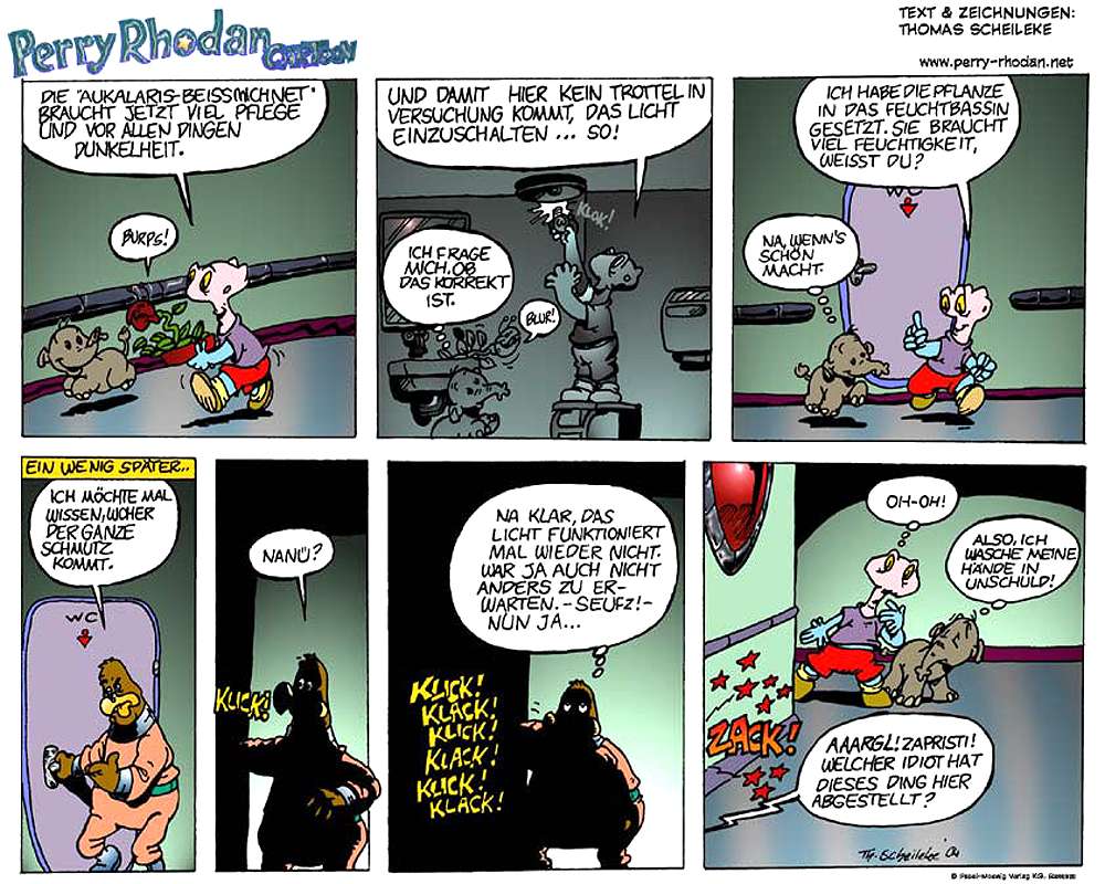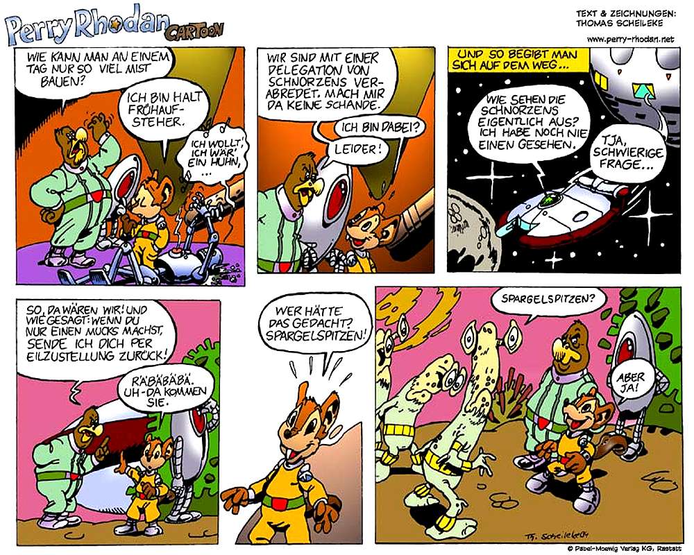 Thomas Scheileke war der Zeichner und Texter von fast 200 Perry Rhodan Cartoon-Ausgaben. In Heft Nr. 2181 (10.06.2003) war