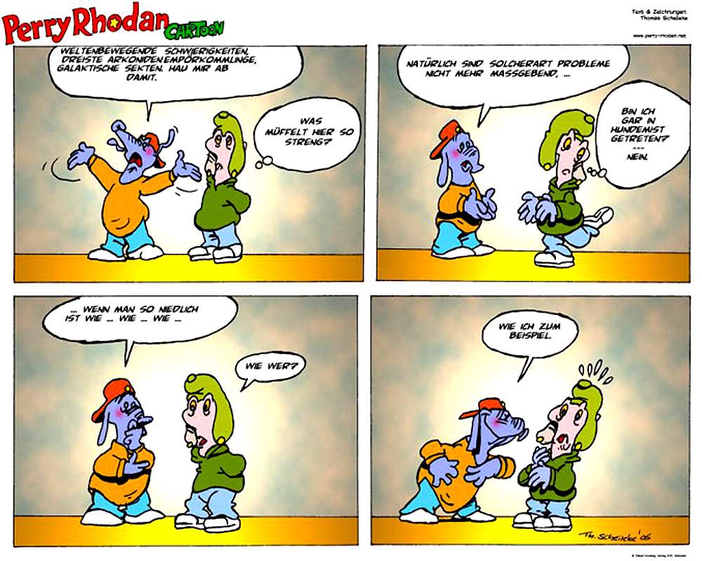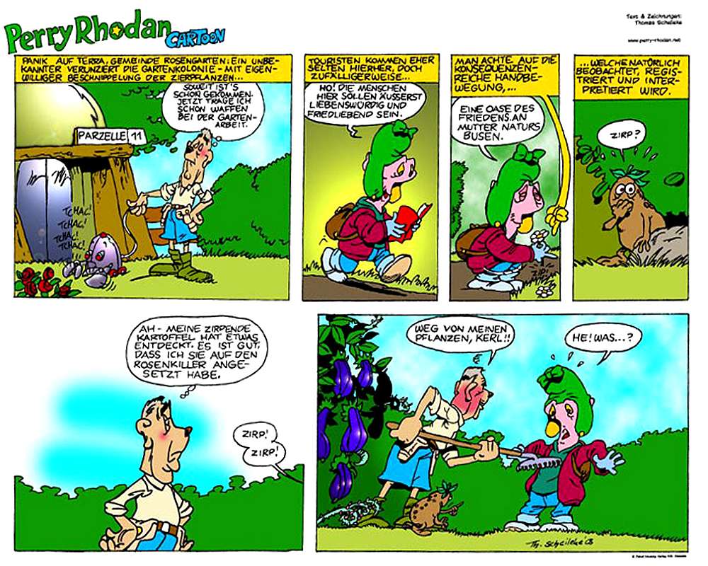 Thomas Scheileke war der Zeichner und Texter von fast 200 Perry Rhodan Cartoon-Ausgaben. In Heft Nr. 2181 (10.06.2003) war