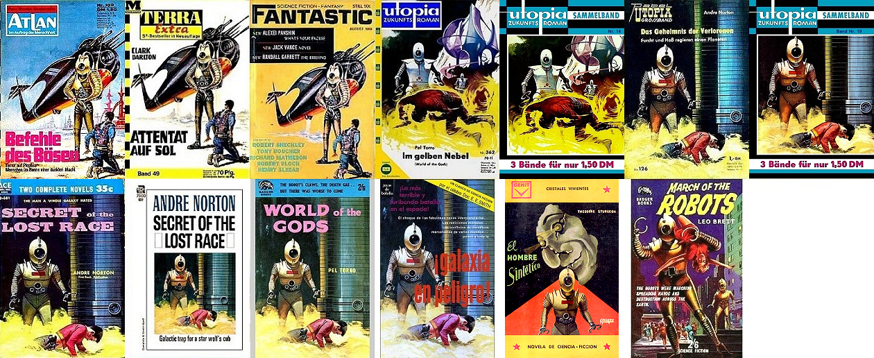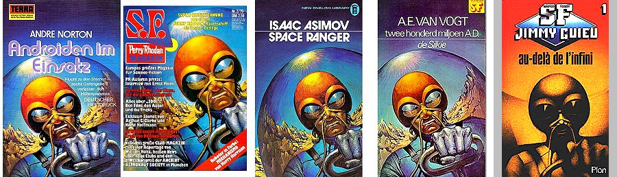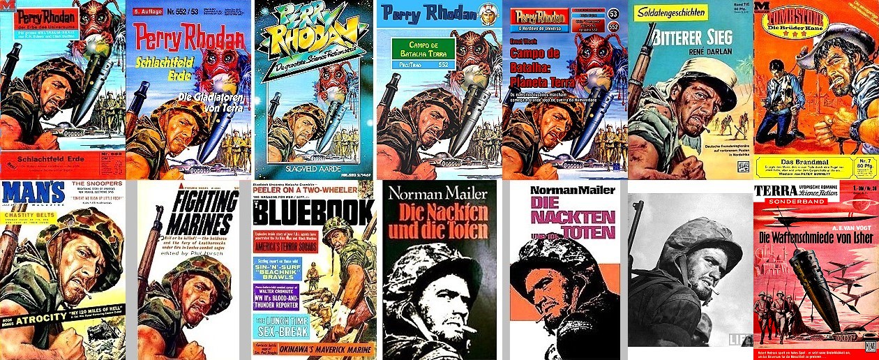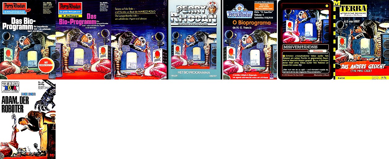 ähnliche Motive, 1 - 3, 5 - 6 gleiches Bild, 7 von 5 nachgezeichent, Vorbild für Mann in 1 ist Kurt Mahr |