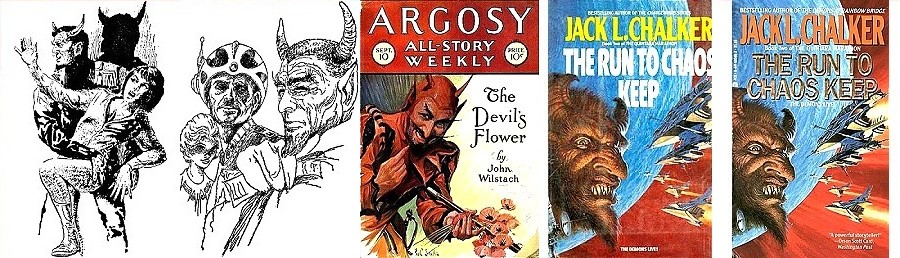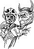 ähnliche Motive, 1 - 6 gleiches Bild, 3 Ausschnitt, 6 leicht überarbeitet (Teufelshörner entfernt, Haare von Mann und Hintergrund schwarz), 7 - 11, 17 und 18 gleiches Bild |