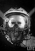 katzengesichtiger Mann mit herzförmiger Sichtöffnung des Raumhelmes |