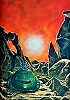 Raumfahrer steigt aus in Felslandschaft gelandetem Raumboot |