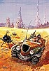 Mann im Geländefahrzeug neben Spinnenroboter |