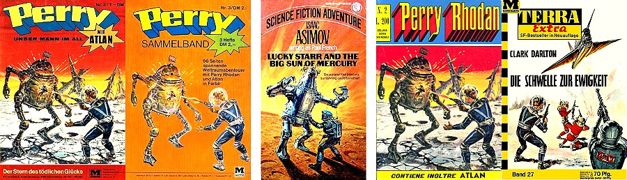 1 - 5 gleiches Bild, 4 seitenverkehrt, 6 Außerirdischer für japanische Ausgabe nachgezeichnet |