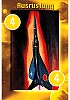 nadelförmiger Raumjäger startet senkrecht von Stadt mit würfelförmigen Gebäuden |