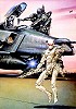 leicht bekleidete Frau mit Speer gegen Außerirdische |