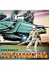 Mutant mit großem Kopf umringt von Tieren mit Waffen |