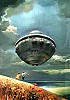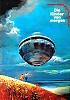 Kugelraumer schwebt über Wiese, darunter 2 Kinder |