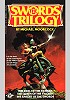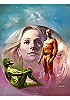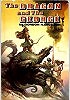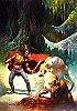 Krieger beschützt Mädchen mit Schwert, im Hintergrund Riesenschlange |