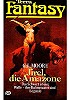 nackte Frau mit erhobenen Händen, dahinter Raubtier |
