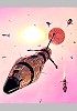 Raumschiff im Form und Perspektive identisch, aber mit veränderten Farben und umgedreht nachge- zeichnet |