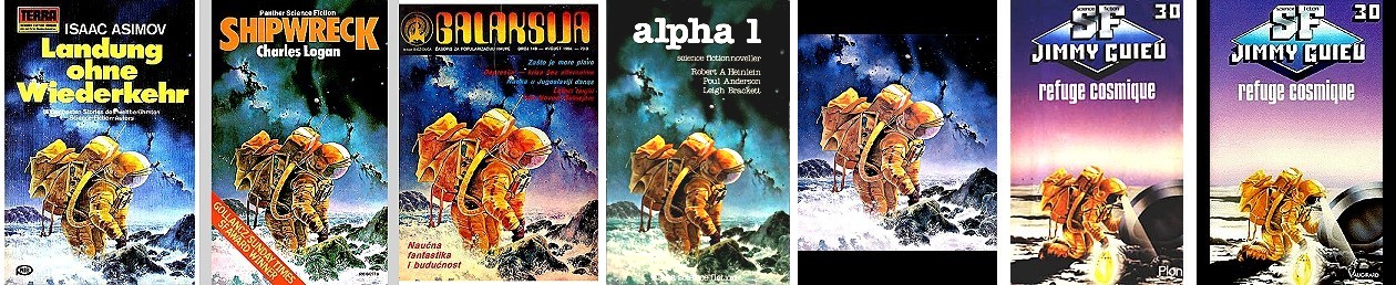 1 - 5 gleiches Bild, 6 und 7 Raumfahrer nachgezeichnet, Hintergrund unterschiedlich |
