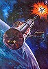 gelandetes Raketenraumschiff wird von Mondstation beschossen |
