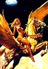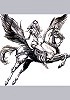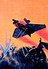 Raumjäger im Kampf, darüber Kopf einer Frau |