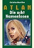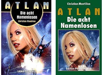Mondlandschaft mit Raumfahrern und Atlan-Kopf |