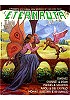 geschwänzter Krieger vor riesigem Rinderschädel, auf dem Mädchen liegt |